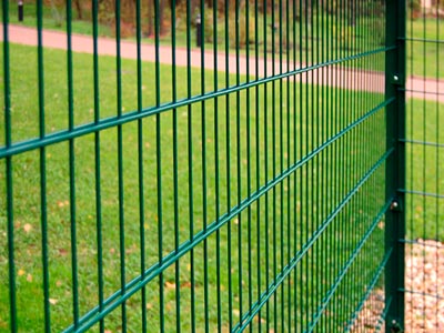 При изготовлении 2D забора горизонтальные прутки, как правило, изготавливаются из более толстого сечения чем вертикальный прут. Двойные горизонтальные прутки дают ограждению большую прочность, чем при изготовлении 3 D заборов.